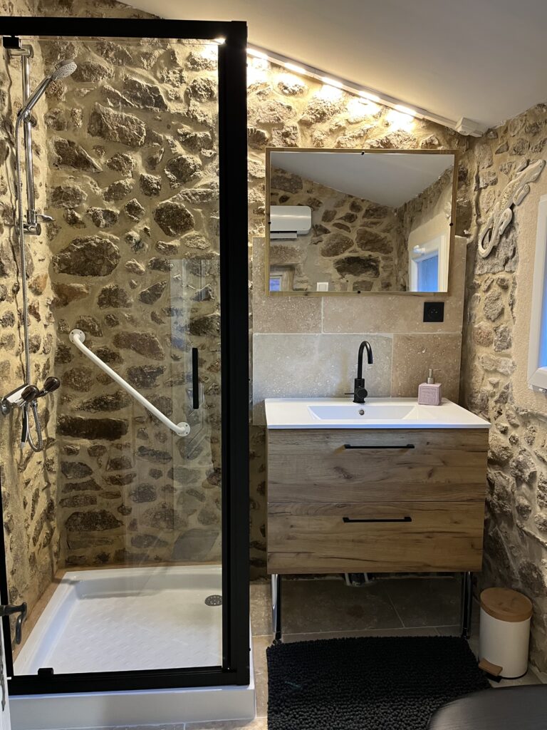 Douche à l’italienne, lavabo + wc, et 2 peignoirs pour le Spa.